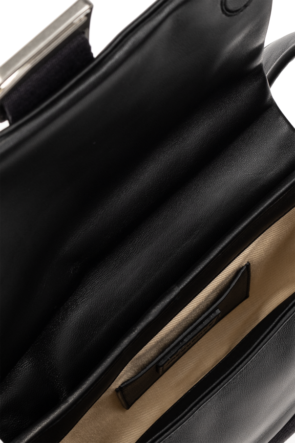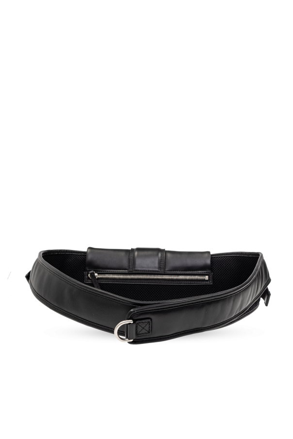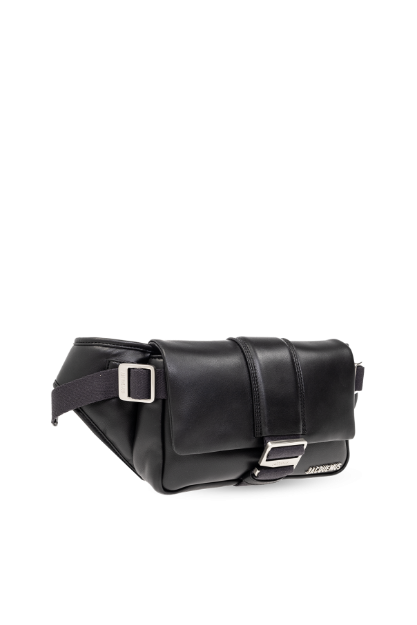 Black ‘Le Banane Bambimou’ belt bag from Jacquemus. Crafted from lamb leather, this design features a buckle strap, magnetic snaps, metal logo detail, zipped back pocket, adjustable strap, silver-tone metal hardware and one internal compartment with one card slot.