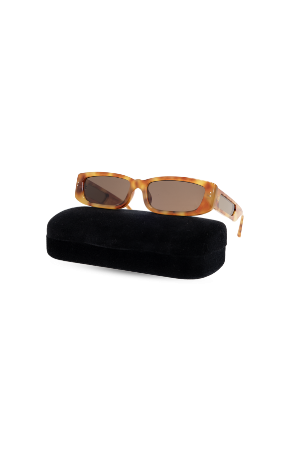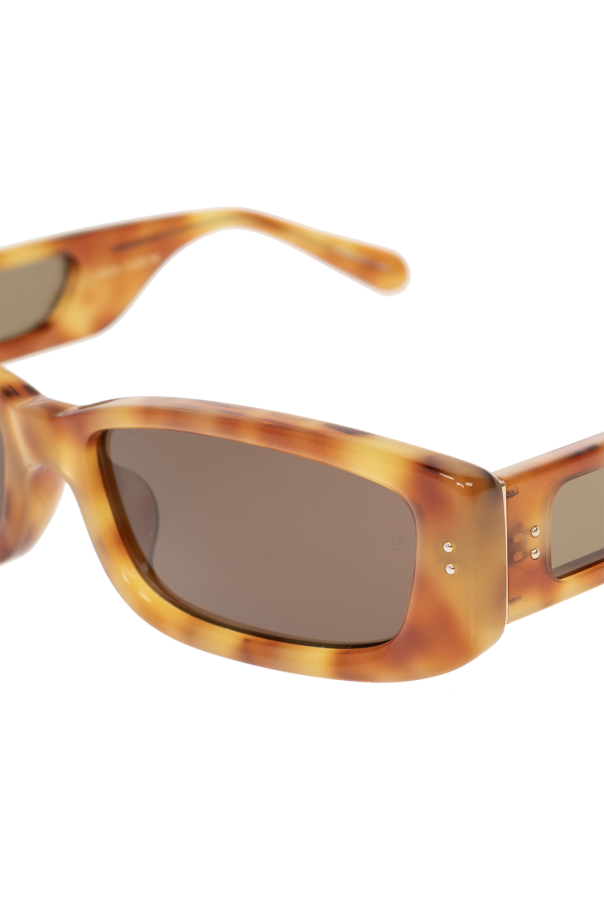 Brown and yellow ‘Talita’ sunglasses from Linda Farrow. Made of hand-polished acetate with a tortoiseshell effect, this pair features a rectangular frame, lens inserts at the temples and brown lenses with UV protection. Case included.