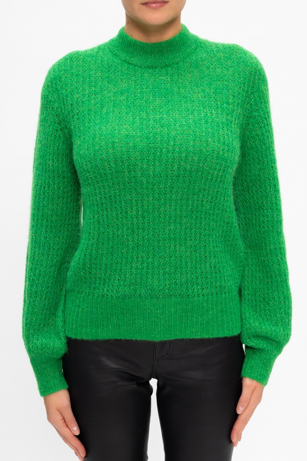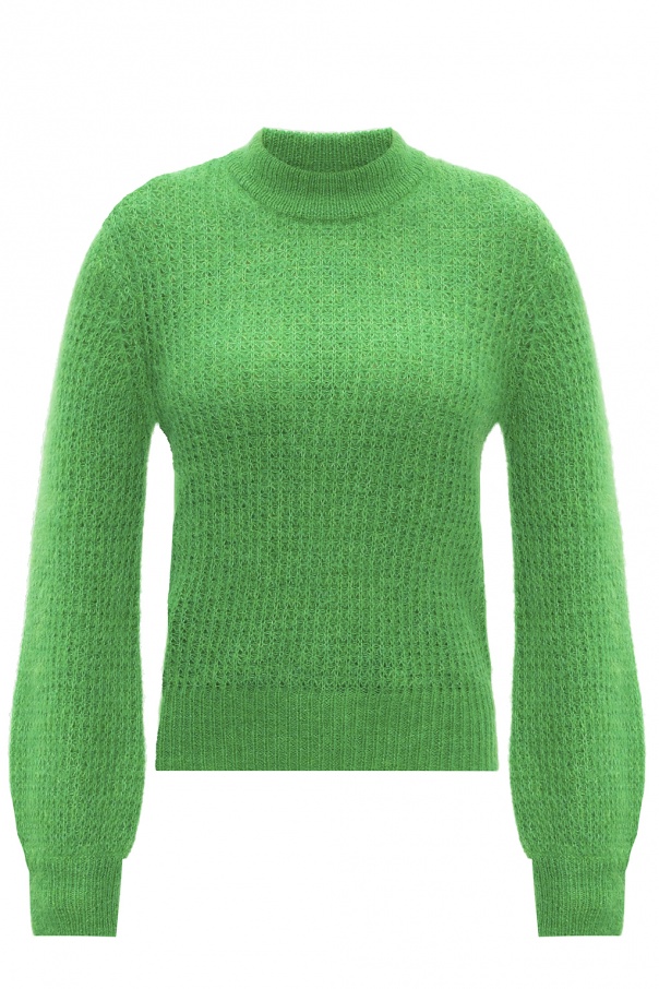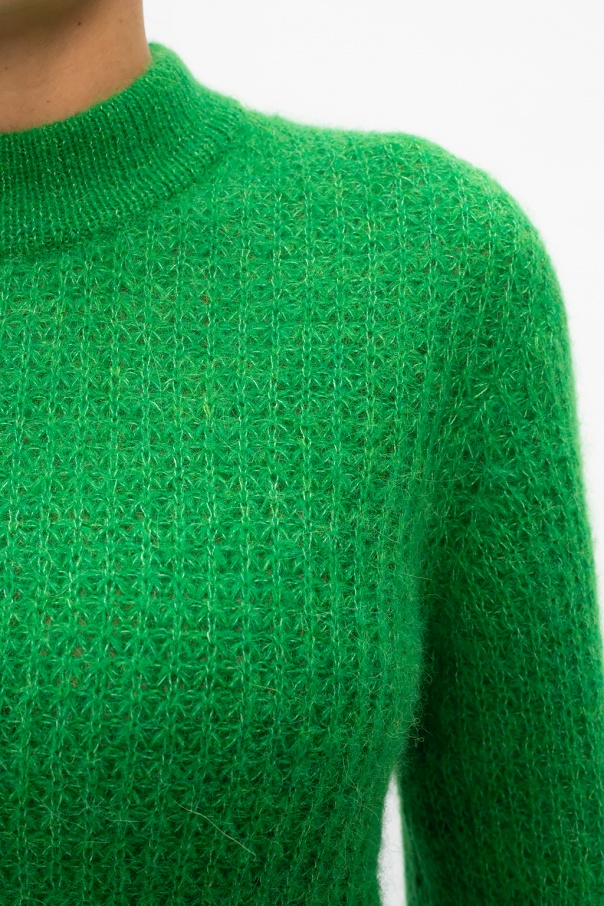 Green knitted sweater from Samsoe Samsoe. This round neck design features ribbed trims.
