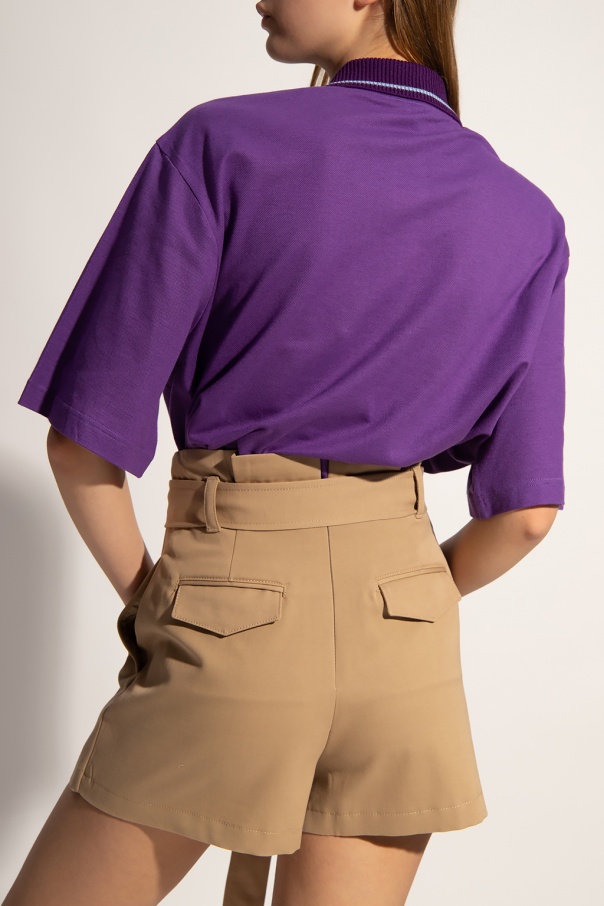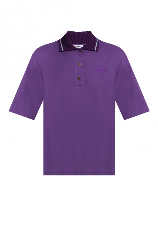 Purple polo shirt from Loewe. Crafted from cotton with ribbed detailing, this item features button fastenings, side slits and an embroidered logo.