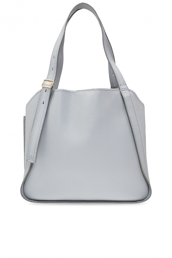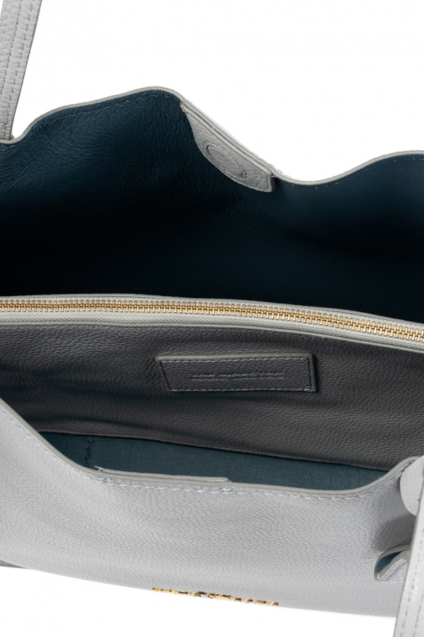 Grey hand bag from Marc Jacobs (The). Crafted from leather, this design features a magnetic snap, logo appliqué, two half-round handles, gold-tone metal hardware and two internal compartments with one zip pocket.