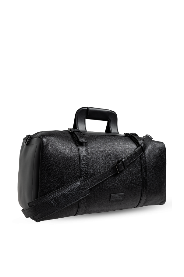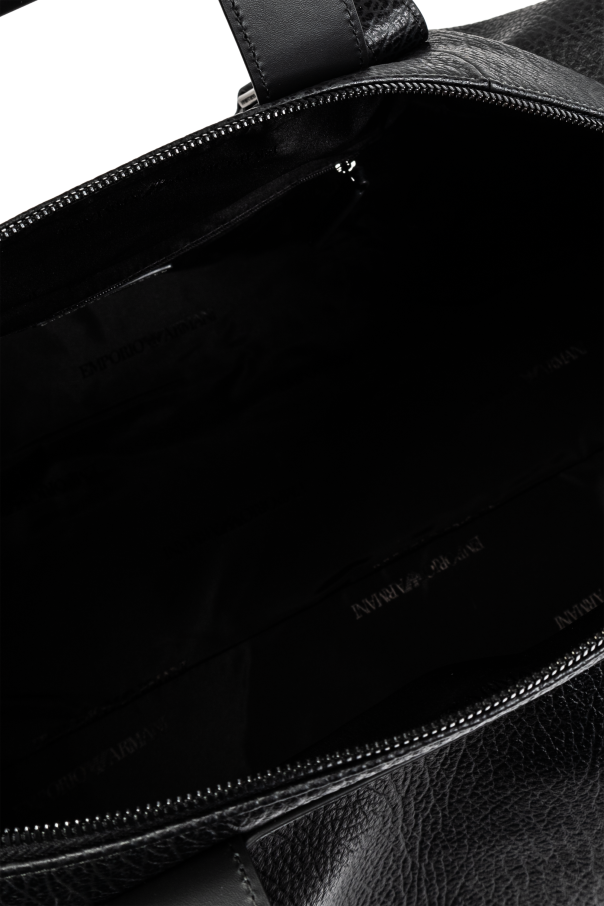 Introducing the epitome of sophistication and utility: the Emporio Armani Leather Handbag. With its classic rectangular shape and rounded edges, this exclusive piece exemplifies the timeless elegance and unparalleled craftsmanship synonymous with the Emporio Armani brand. The bag boasts a sleek, monochromatic black surface, enhanced by the natural grain of high-quality leather. This luxurious texture not only elevates its aesthetic appeal but also ensures durability. The solid, ergonomic handles and adjustable shoulder strap offer versatile carrying options, providing both comfort and style. Secure your essentials with the robust zipper closure, while the subtle designer logo on the front adds a touch of understated luxury. Inside, discover a spacious main compartment lined with the designer's signature fabric. This ample interior, complete with a zippered pocket and slip pockets, is perfect for organizing your belongings, making it an ideal travel companion. The handbag's unisex design and universal black color further enhance its versatility, catering to both men and women who value sophistication and functionality. Why Choose This Product? High-quality grainy leather for elegance and durability Ergonomic handles and adjustable shoulder strap for versatile carrying Secure zippered closure for added safety Spacious interior with multiple pockets for efficient organization Subtle designer logo for a touch of luxury Unisex design, perfect for any stylish traveler From the renowned Emporio Armani, known for luxury and innovation