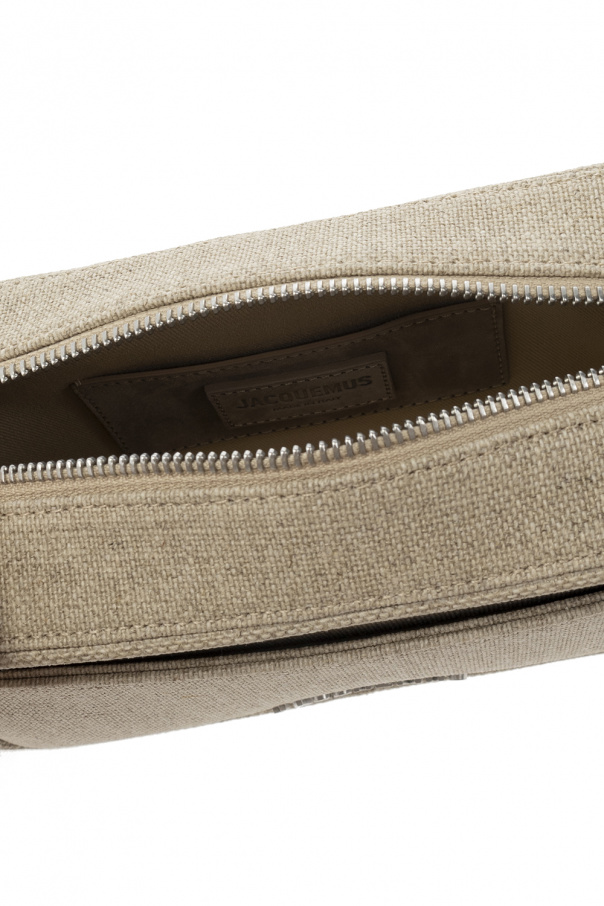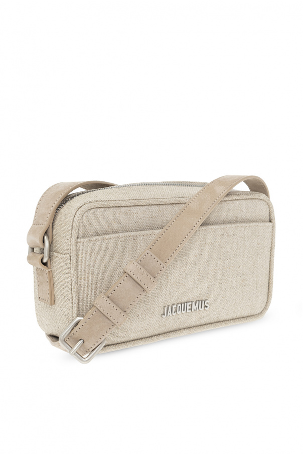 Beige ‘Le Baneto’ shoulder bag from Jacquemus. Crafted from canvas, this design features leather trims, a metal logo plaque, two external slip pockets, an adjustable strap, silver-tone metal hardware and one internal compartment with a card slot.