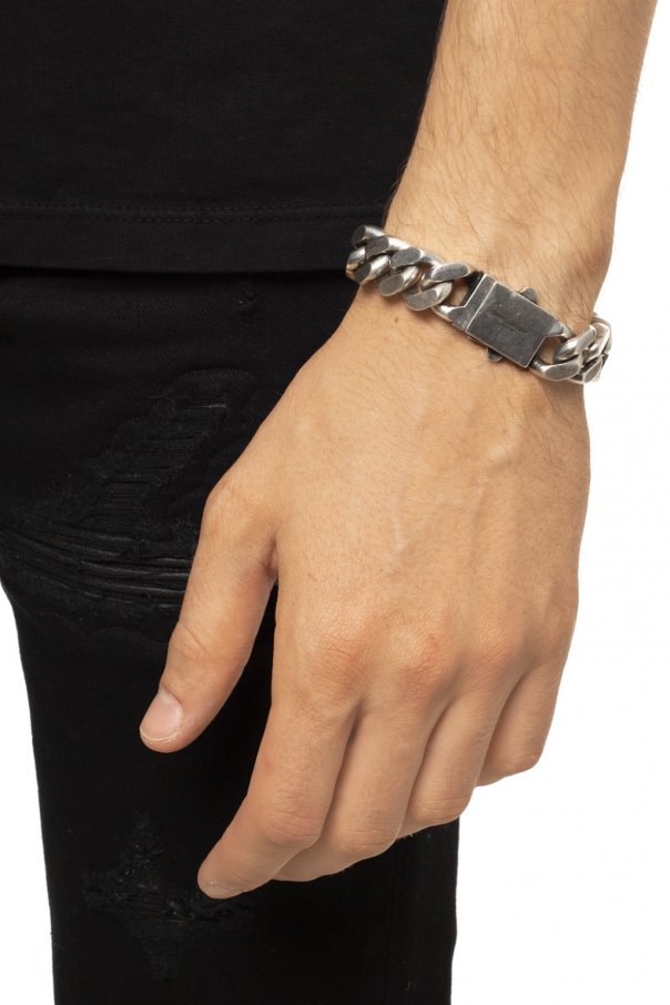 Silver-tone bracelet on a chain from Saint Laurent. Decorated with an embossed logo.