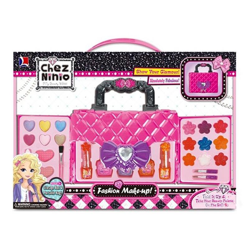 красивый набор косметики и маникюра складывается в сумочку, в него входит 5 лаков, палитра теней, аппликаторы и кисточки для нанесения макияжа, разделитель для пальцев, размер коробки 41-29-7,5 см