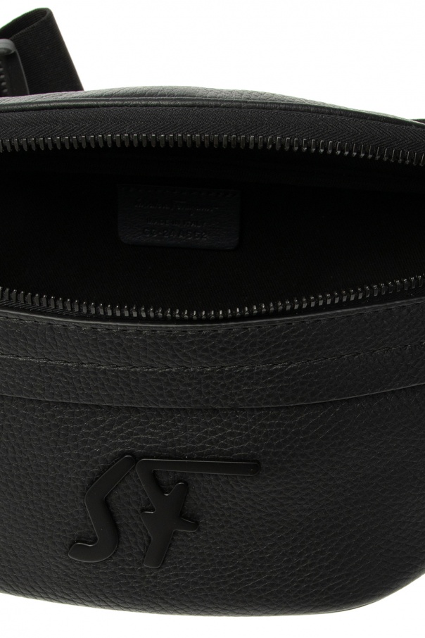 Black ‘Firenze’ belt bag from Salvatore Ferragamo. Crafted from calf leather, this accessory comes with two-way zip fastening, metal logo on the front, adjustable fabric belt, one internal compartment and black metal hardware.