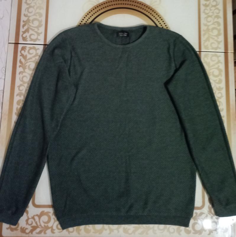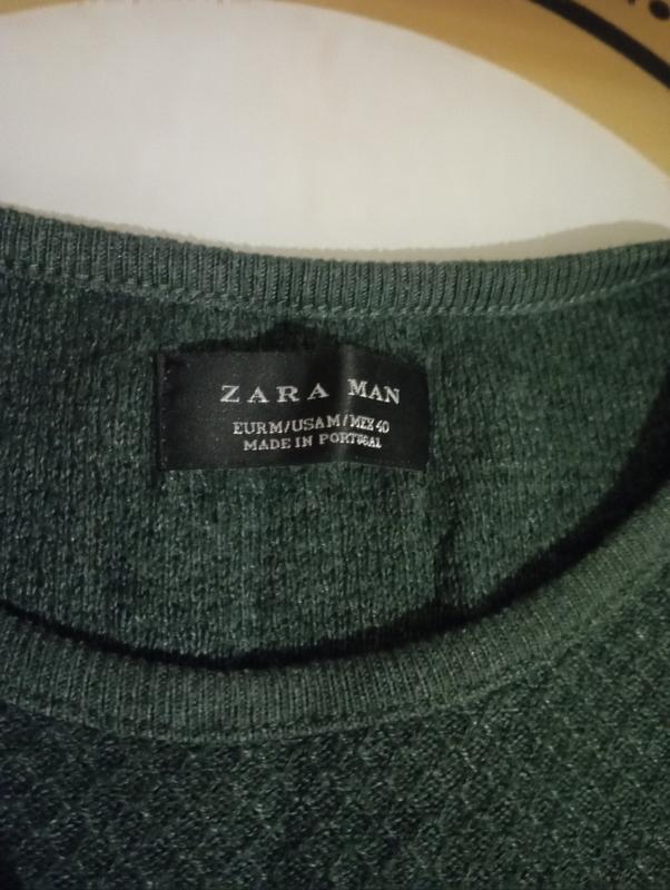 Фирменный мужской свитер от Zara, плечи 42, ПІГ 54, ПИТ, 50, рукав 64, длина изделия 68. Цвет серо-зеленый. Бирка со складом срезанная, безложений и катышков.