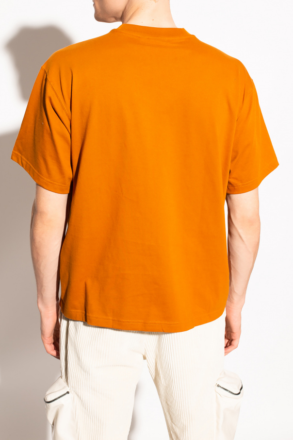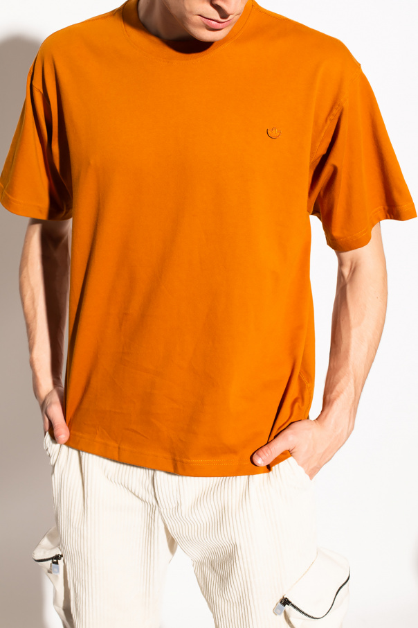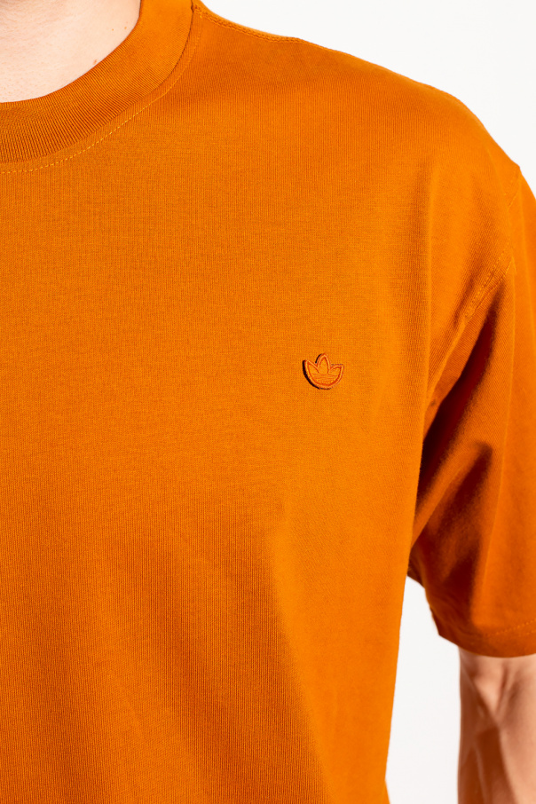 Orange crewneck T-shirt from ADIDAS Originals. Crafted from organic cotton, this style features a logo patch on the front.