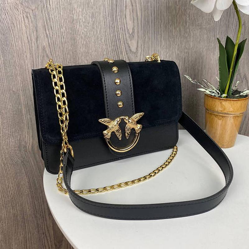 Производитель: Турция; Материал: натуральная замша + высококачественная экокожа (хорошо держит форму); Закрывается на 2 магнита-кнопки; Внутри 3 отделения; Фурнитура: металл; Плечевой ремень: цепочка+экокожа; Длина плечевого ремня: 145 см (максимальная, можно складывать в двое или укоротить при необходимости, выбрав лишние звенья в цепочке); Длина: 23 см; Высота: 14,5 см; Ширина на основе: 8 см;Состояние: НовоеЦвет:- Бордовый