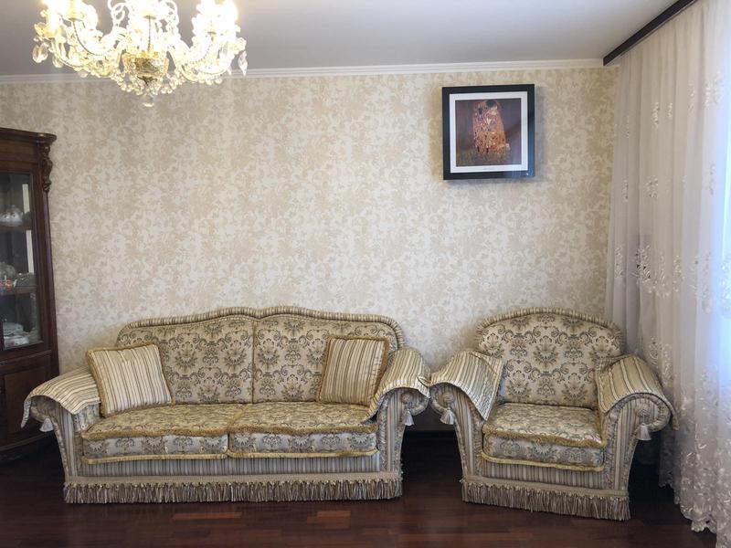 Розміри дивана: длина зовнішня зліва вправо, в т.ч. з боковинами - 2,25м; глибина - з краю боковини до спинки 0,95м; глибина сидіння 0,70м; длина внутрішня - зліва вправо по сидушках - 1,64м.