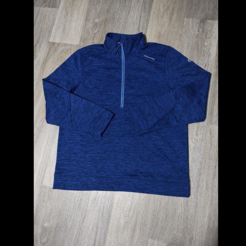 Мужская фирменная кофта "Craghoppers" в отличном состоянии, без дефектов. Материал средней плотности, тянется; с внутренней стороны есть небольшой начёс. Состав: 100% полиэстер. Цвет: синий / чёрный.....