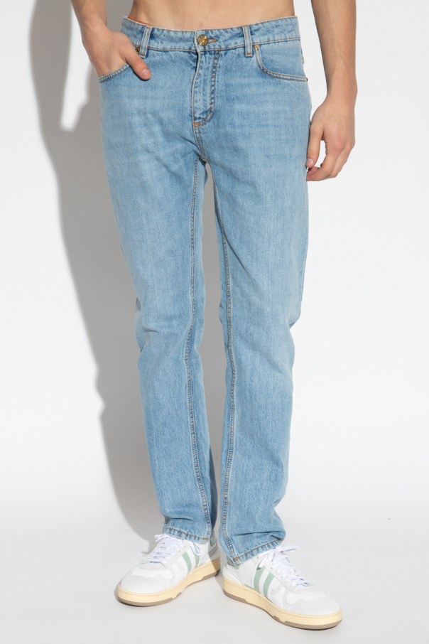 Blue jeans from Etro. Crafted from cotton, this pair falls with slightly tapered legs and showcases a graphic print, fauna & flora embroidery as well as a zip fly with a button and classic five pockets.