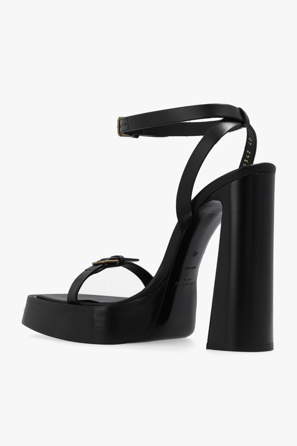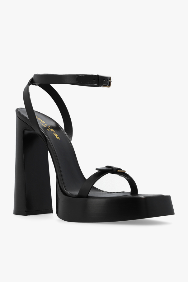 Black ‘Platz’ platform sandals from Saint Laurent. Made of calf leather with a square toe, this model sits on a black leather sole and features adjustable buckle straps.