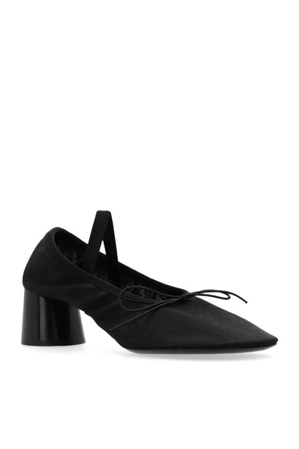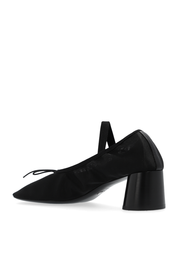 Black ‘Mery Jane’ pumps from Proenza Schouler. Made of mesh, this pair features an elastic strap, decorative bow, rounded toe and a black leather sole.