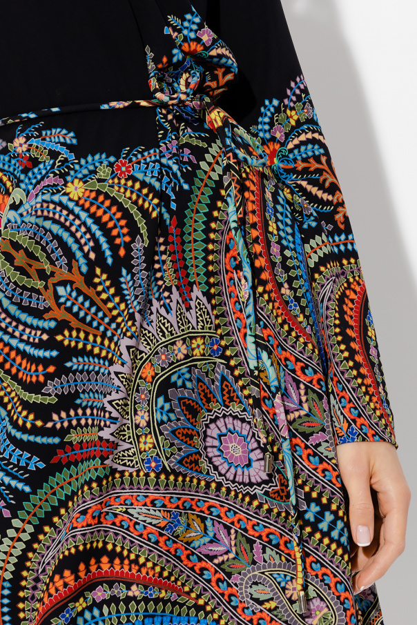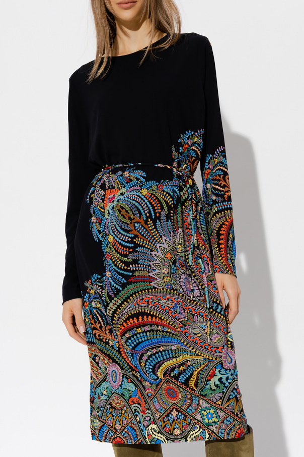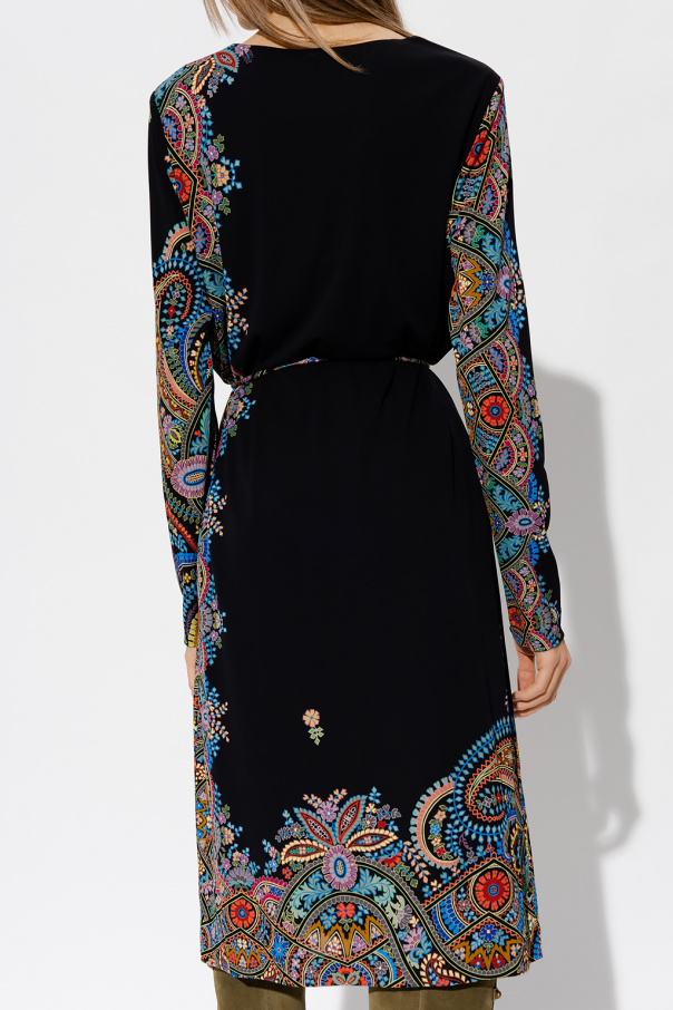 Black dress with a removable waist belt from Etro. This garment has a removable belt, round neck and long sleeves.