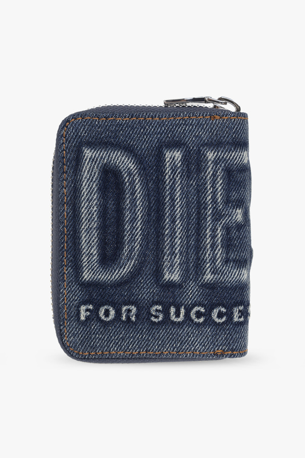 Navy denim key holder from Diesel. Fastened with a zip, this design features two slip pockets, six key hooks and silver-tone metal hardware.