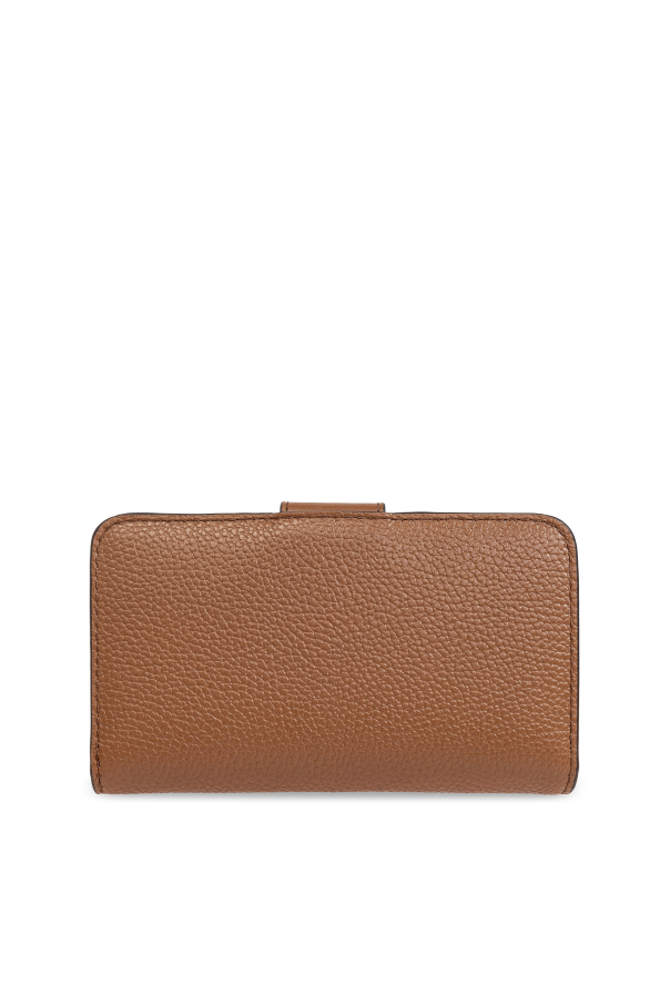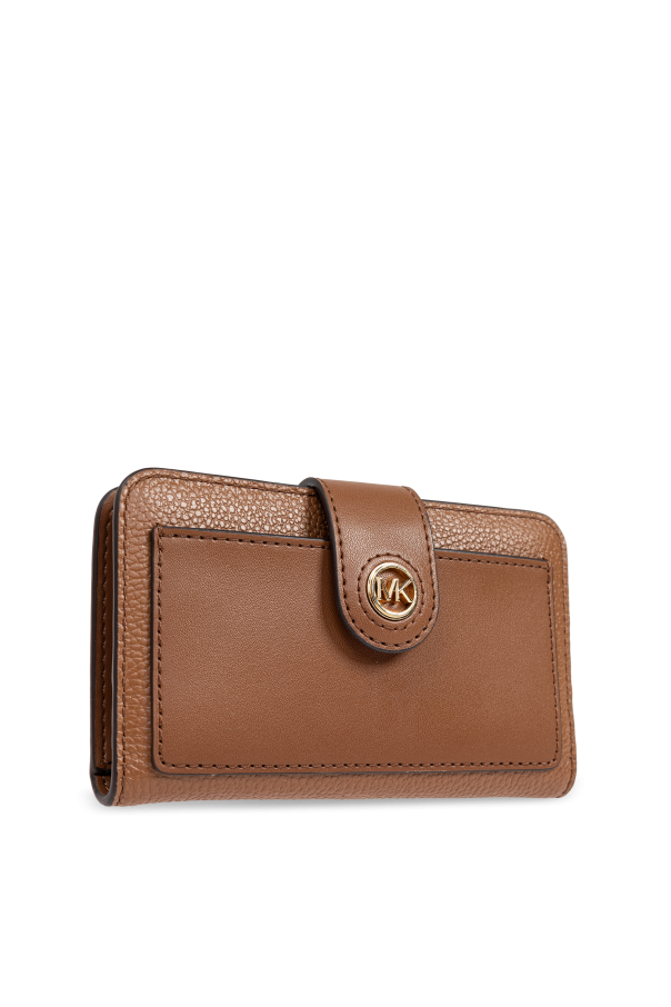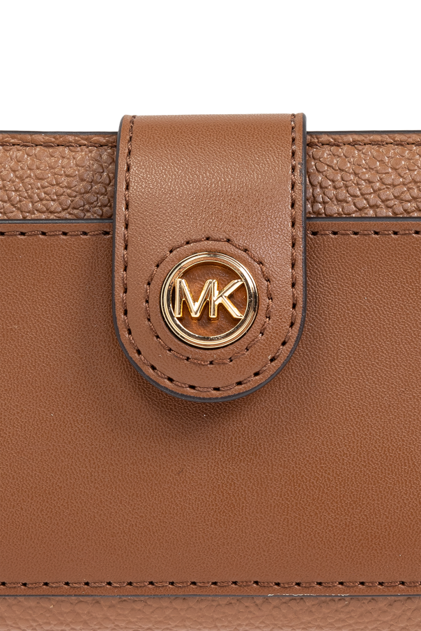 Introducing the MK Charm Wallet from the illustrious designer Michael Kors. This exquisitely crafted wallet epitomizes sophistication and functionality, making it an indispensable accessory for the discerning individual. Meticulously designed with a rectangular shape and rounded corners, this wallet is made from premium brown leather featuring both smooth and textured surfaces. The dominant brown hue, contrasted subtly by the leather's texture, exudes timeless elegance. The front flap is adorned with a golden "MK" logo, and the interior boasts a golden "MICHAEL KORS" inscription at the bottom. The wallet's closure, a secure flap with a snap, ensures that your belongings are safely stored. Inside, the wallet offers a variety of compartments, including a transparent window slot for IDs or photos, pockets for cards, and a zippered compartment perfect for coins. This thoughtful design marries luxury with practicality. Why Choose This Product? Exquisite craftsmanship by Michael Kors High-quality brown leather with smooth and textured finishes Secure snap closure for enhanced security Multiple compartments for optimal organization Elegant golden "MK" logo and interior branding