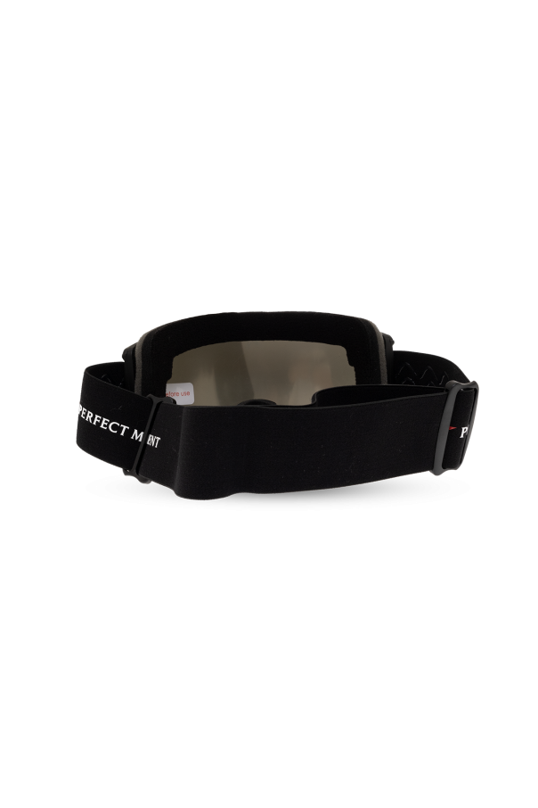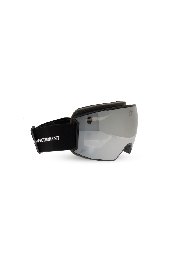 Ski goggles from Perfect Moment. This model comes with an included pair of interchangeable lenses with a mirror effect in silver-tone and yellow-blue-purple and features a black elastic strap with adjustable length and silicone elements to prevent slipping, the brand's signature star-shaped logo on the front, and an internal foam that adapts to the contours of the face. Case included.