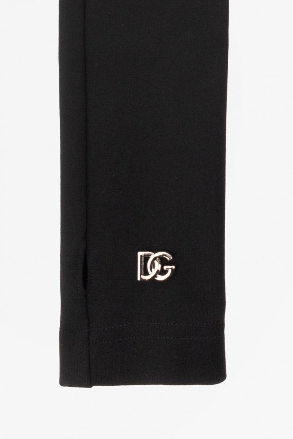 Long fingerless gloves in black from Dolce & Gabbana. This pair features a silver-tone metal logo plaque.