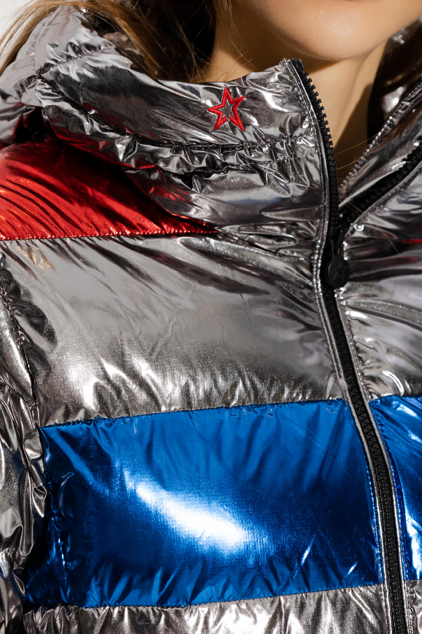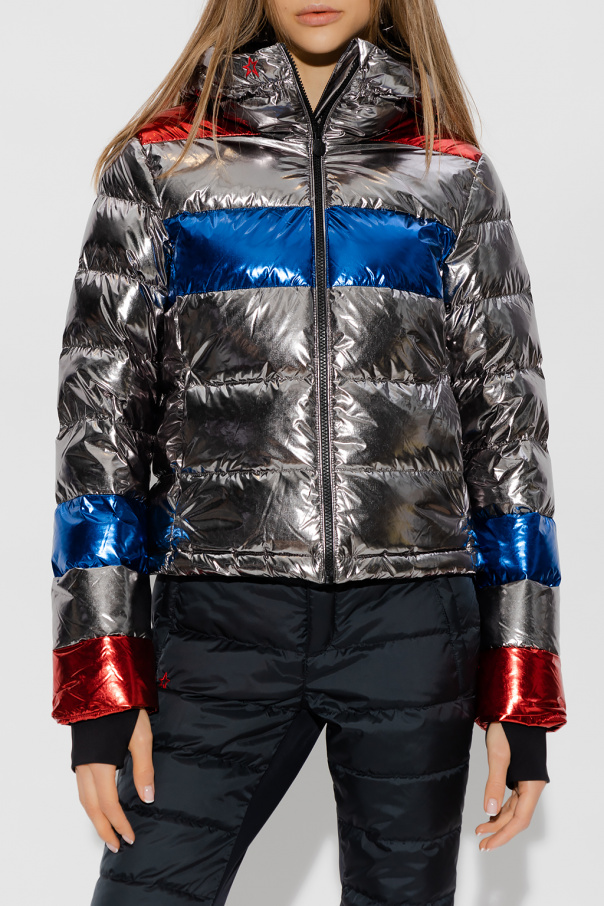 Grey, red and blue ‘Lily’ ski jacket from Perfect Moment. Fastened with a zip, this design features a logo embroidery, two front zip pockets, drawstring hem, internal ski goggles pocket and long sleeves with ribbed cuffs and thumb holes.
