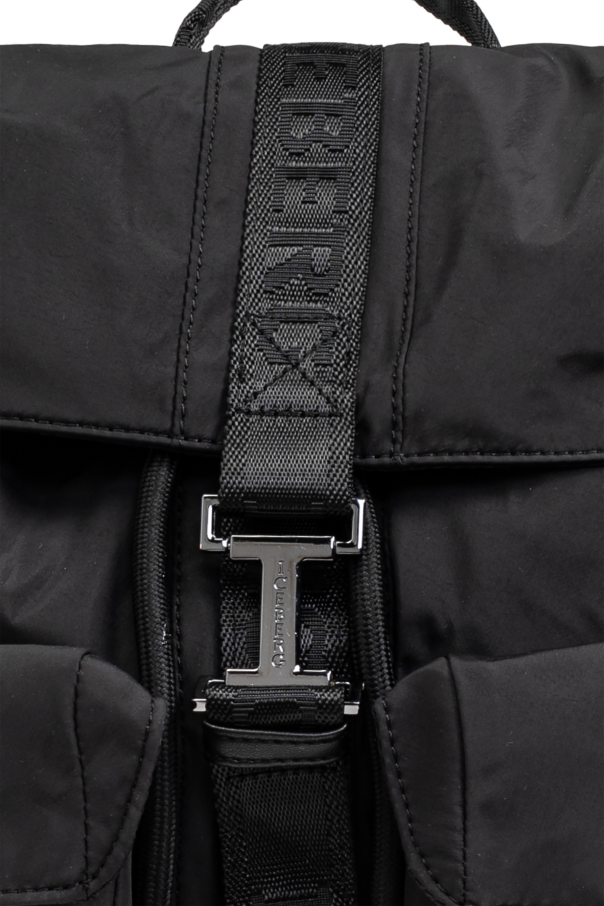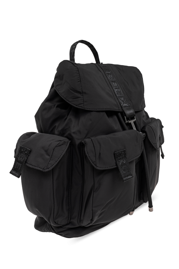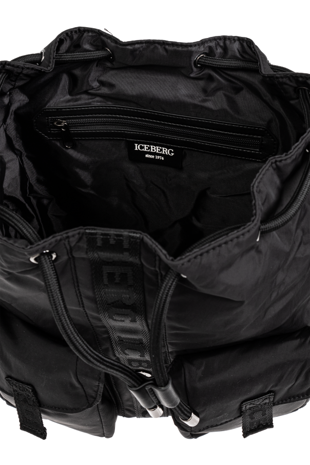 Introducing the Iceberg Backpack with Logo, a masterpiece from the renowned designer brand Iceberg. This exclusive black backpack, crafted from premium polyester, exudes sophistication and modernity. The backpack features a classic rectangular shape with rounded edges, accentuated by a large flap that secures the main compartment with a sturdy metal buckle. The smooth, water-resistant material ensures durability and a sleek appearance. Functionality meets elegance with two large front pockets and additional side pockets, all closed with velcro straps, providing ample space for your essentials. Inside, find zippered compartments and a drawstring-secured main chamber to keep your belongings organized and safe. The backpack proudly displays the iconic "ICEBERG" logo on the closing strap and an internal label marking the brand's inception in 1974. The adjustable, padded shoulder straps and a top handle offer comfort and versatility. Why Choose This Product? Exquisite Design: Modern and stylish with a timeless black color. Premium Material: Made from high-quality, water-resistant polyester. Functional and Spacious: Multiple pockets and compartments for organized storage. Comfort and Durability: Padded, adjustable straps and a robust metal buckle. Iconic Branding: Features the renowned Iceberg logo and heritage.