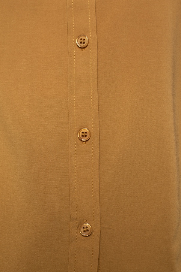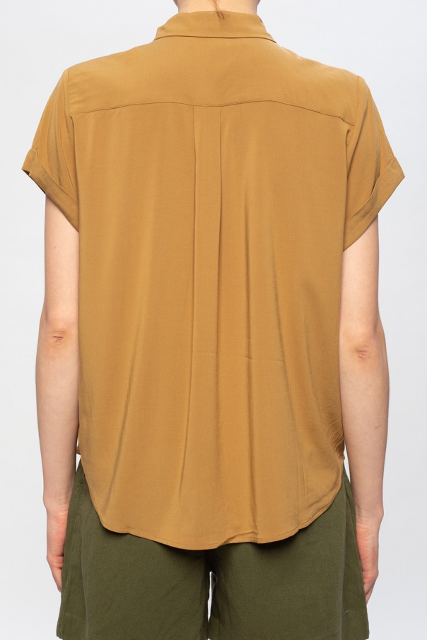 Brown ‘Majan’ shirt with short sleeves from Samsoe Samsoe. Made of recycled materials. Fastened with buttons.