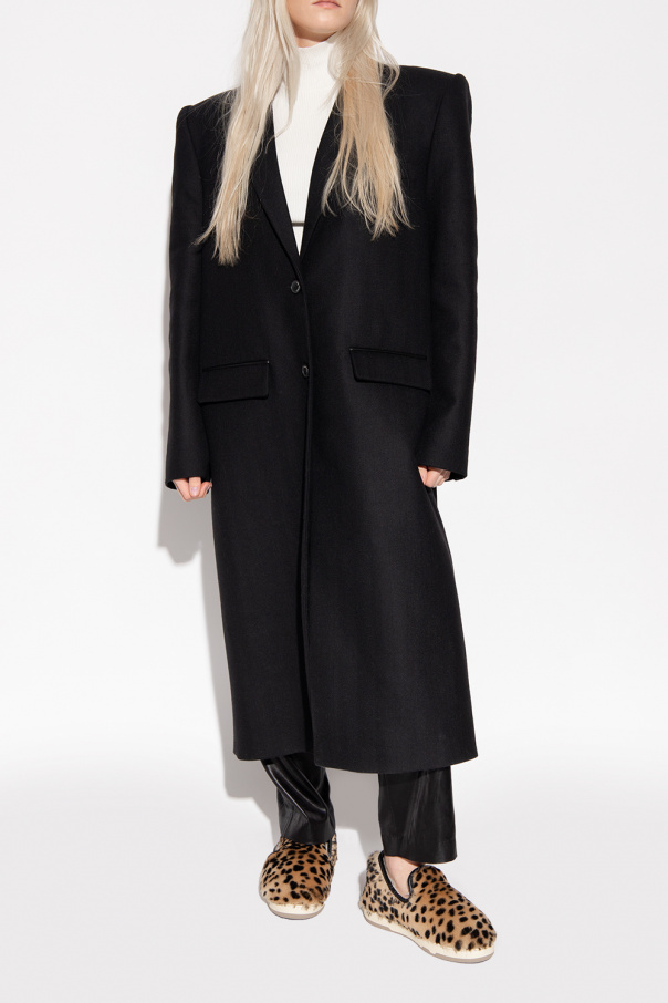 Brown and black ‘Slipper Cosy’ slip-ons from Lanvin. Trimmed with lamb fur, this design features an animal motif, a logo patch, shearling lining and rubber sole in beige and cream.