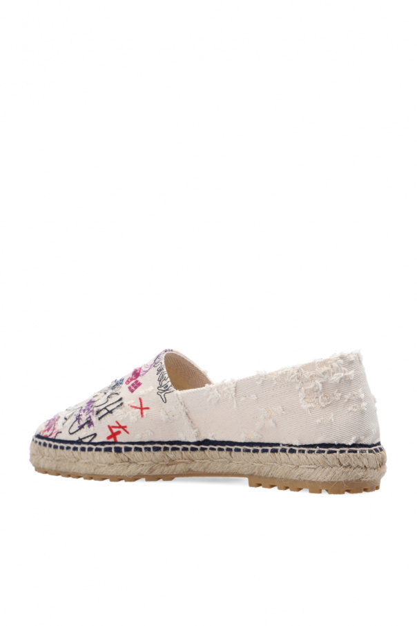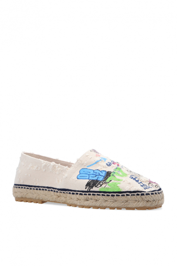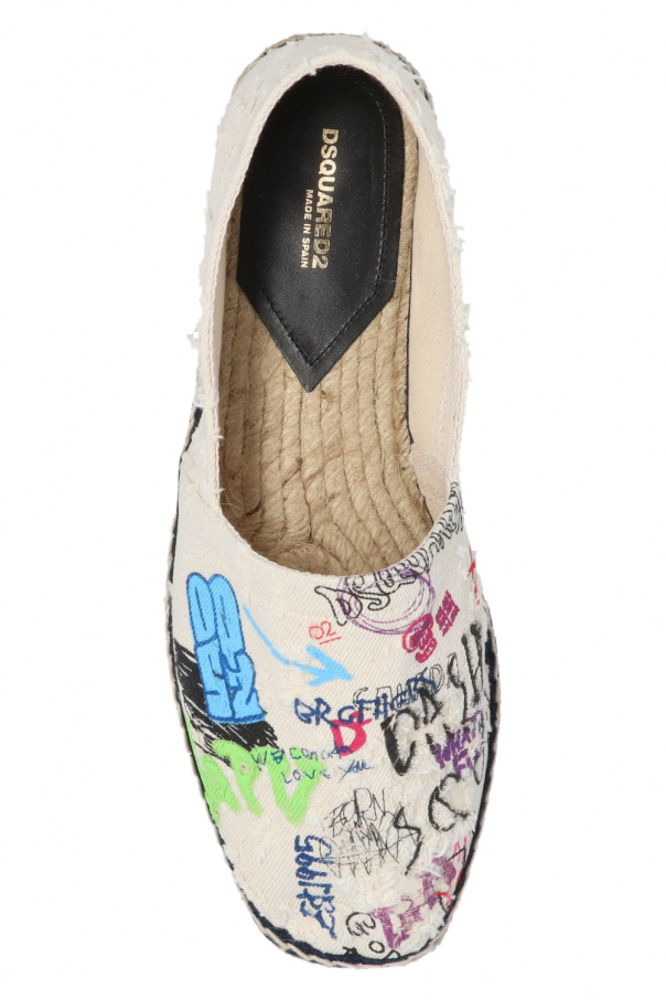 Multicolored espadrilles from Dsquared2. Made of fabric, this pair features a multicolored logo pattern, faded effect and beige rubber sole.