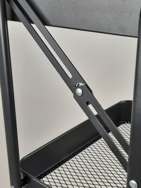 Этажерка стеллаж металлический черного цвета на 3 полки на колесах.