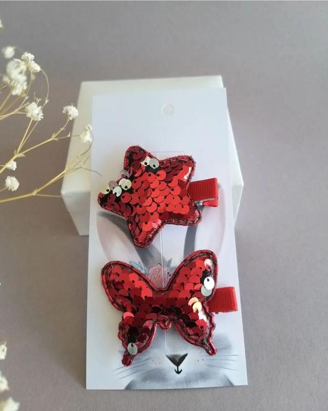 Чудовий яскравий набір з 2 шт заколочек з пайетками,ручна робота ,зроблено з любовью для Ваших маленьких принцесс!❤❤❤