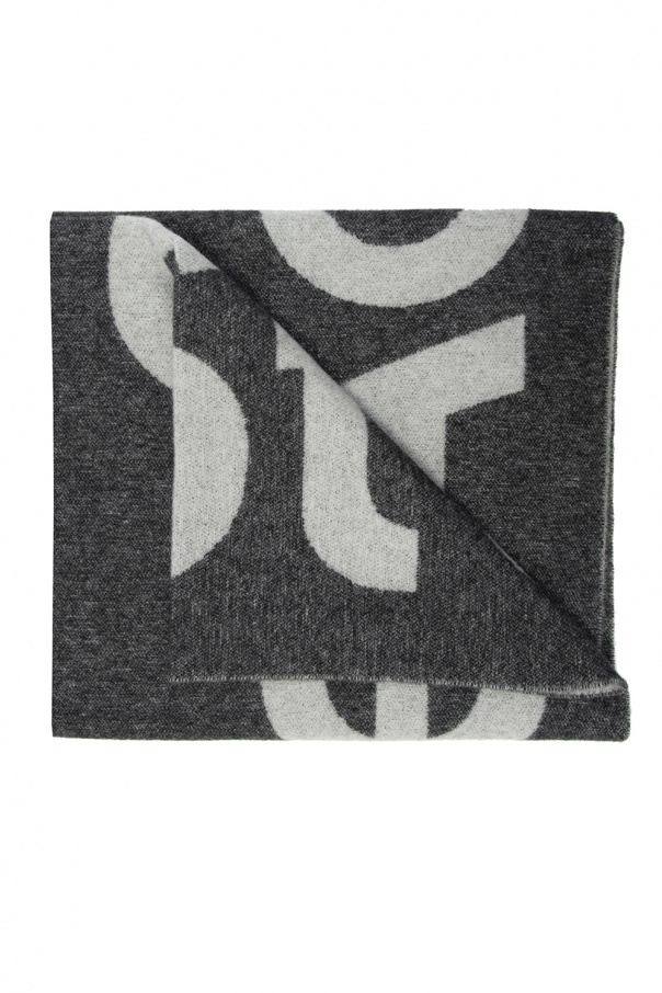 Grey scarf from Acne Studios. Crafted from wool, this design is decorated with a logo embroidery.