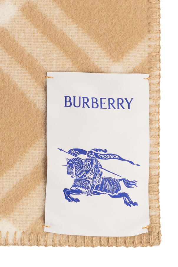 Beige and cream scarf from Burberry. Made of wool, this item is decorated with a logo patch and check pattern.