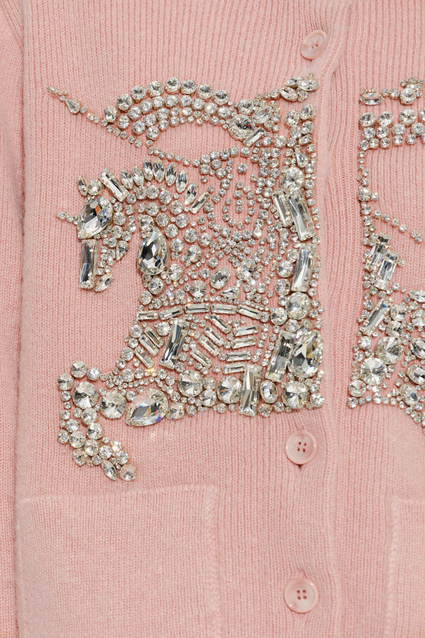 Pink insulated sweater from Burberry. Fastened with buttons, this long sleeve design features sparkling appliqués, two pockets and round neck.