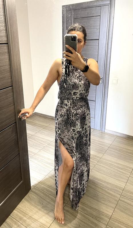 Очень красивое платье. Легке наче пух. Под грудью есть резинка. С двух сторон разрезы. Одета на рост 168 см.