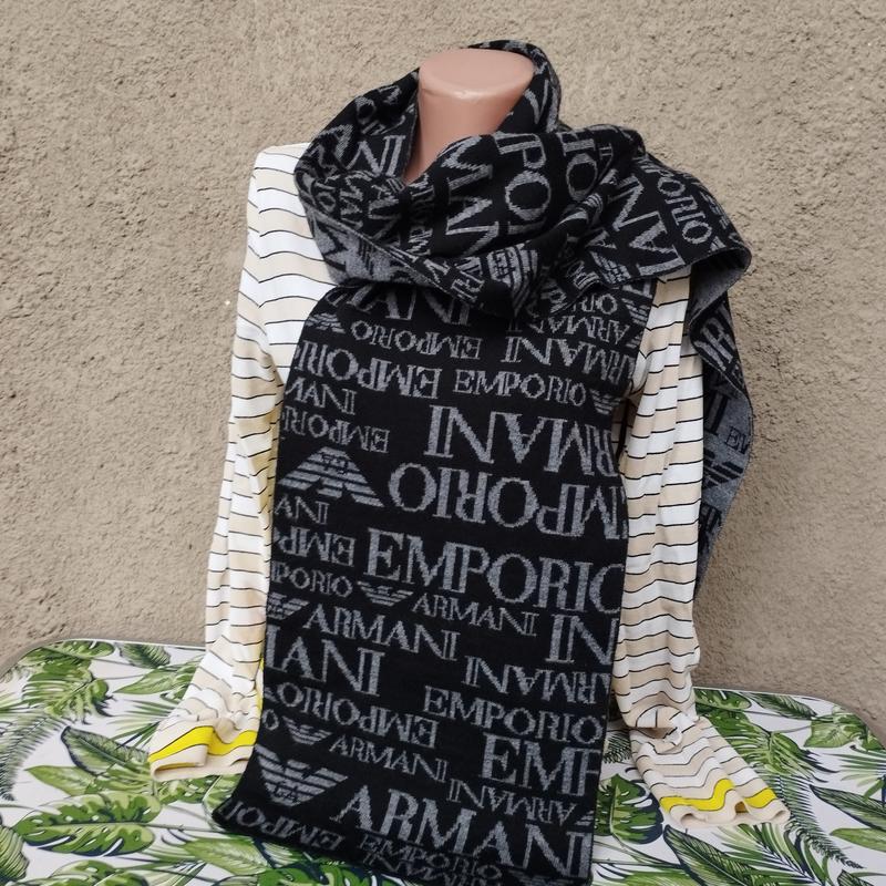 Шарф Emporio Armani в лого. Мягкий, плотный в отличном состоянии б/в. Затяжек нет. Бирка с составом срезана, как на меня акрил. Размер 170х27 см.