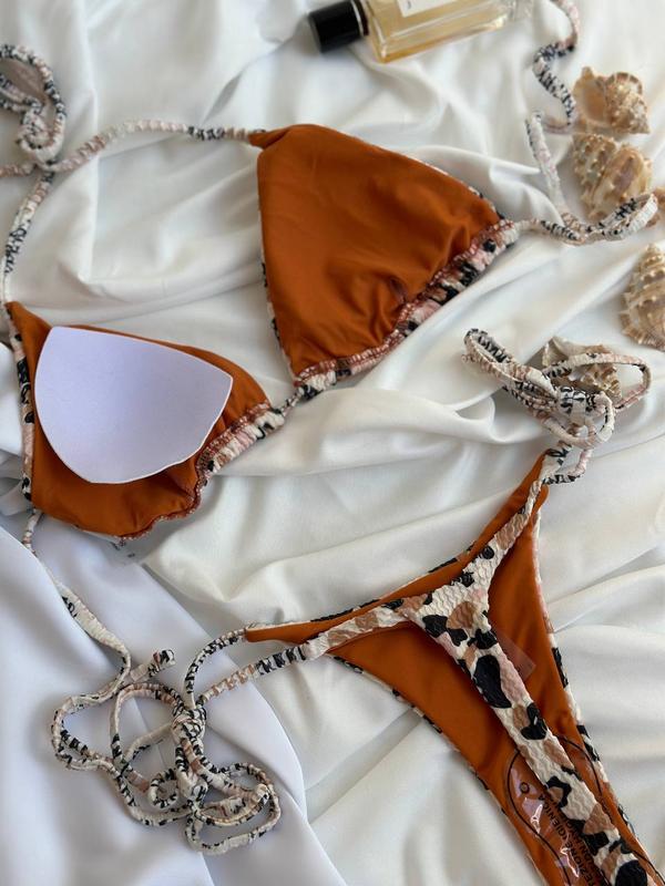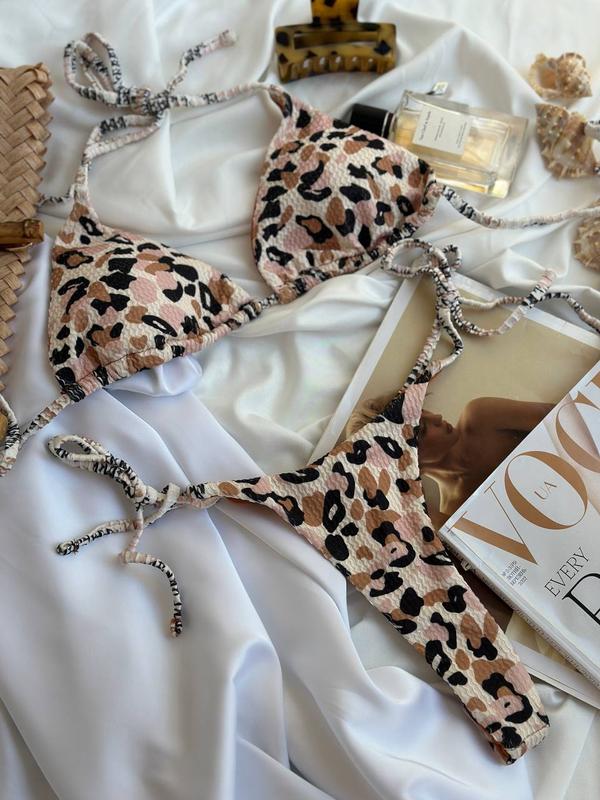 Новый купальник для хорошего настроения. Для идеального загара. Оригинальный дизайн, регулируется в разные стороны, со съемными поролоновыми вкладышами. Плавки стринги на тонких шлейках по бокам. Двойные, ткань жатка леопард.