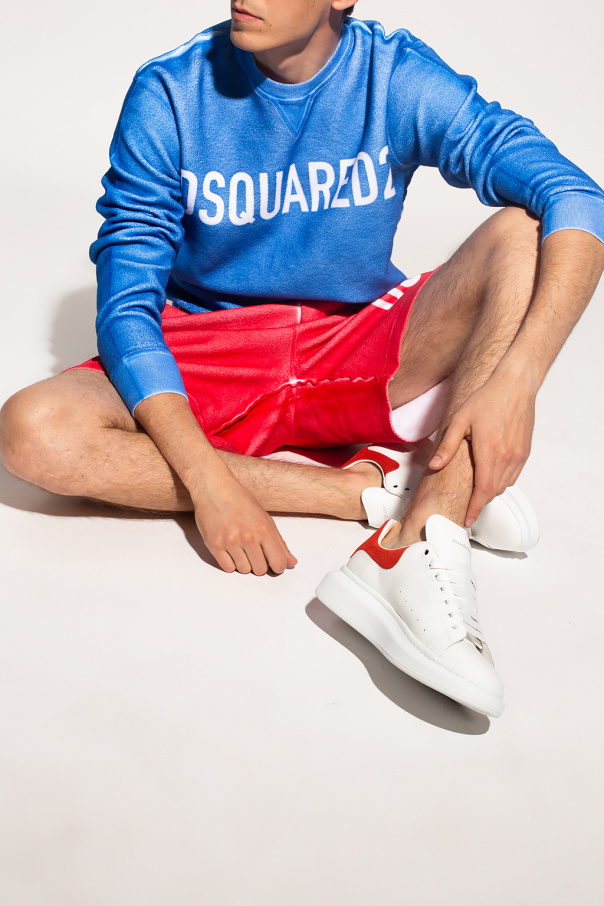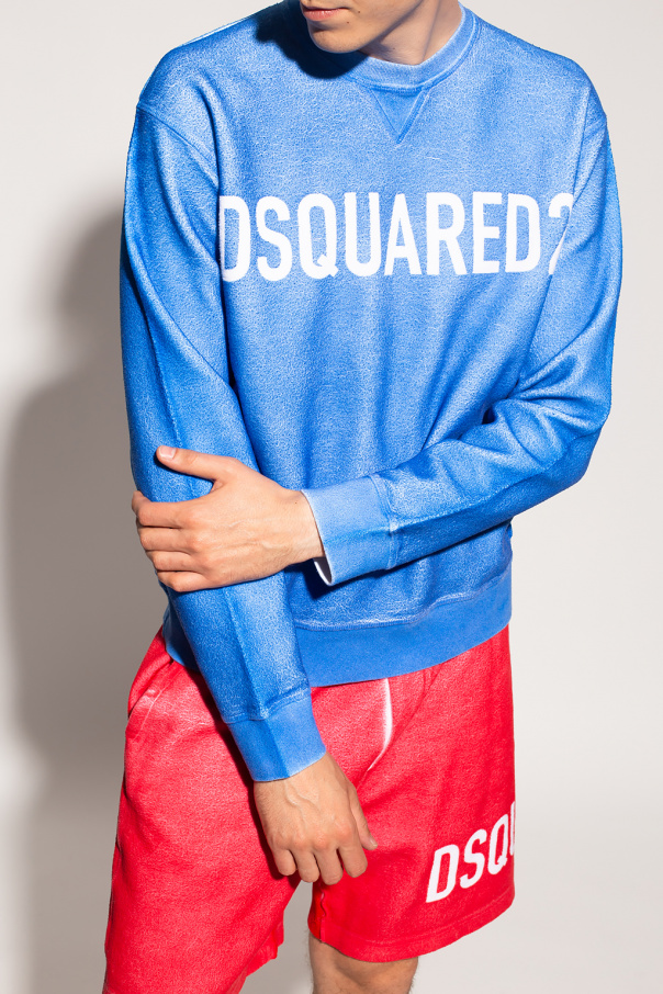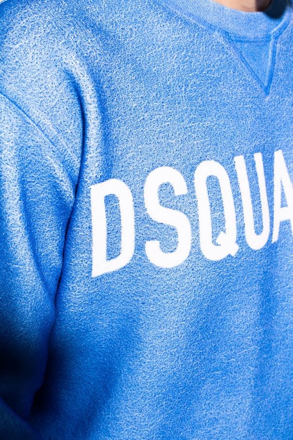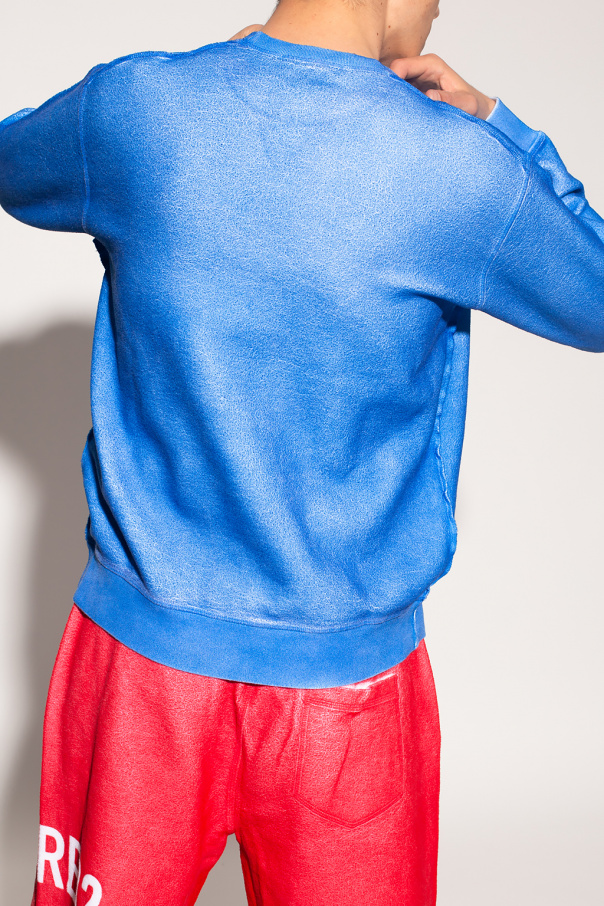 Blue crewneck sweatshirt from Dsquared2. Crafted from cotton jersey, this style showcases a white graphic print with the brand's logo and rib detailing on the bottom hem and cuffs.