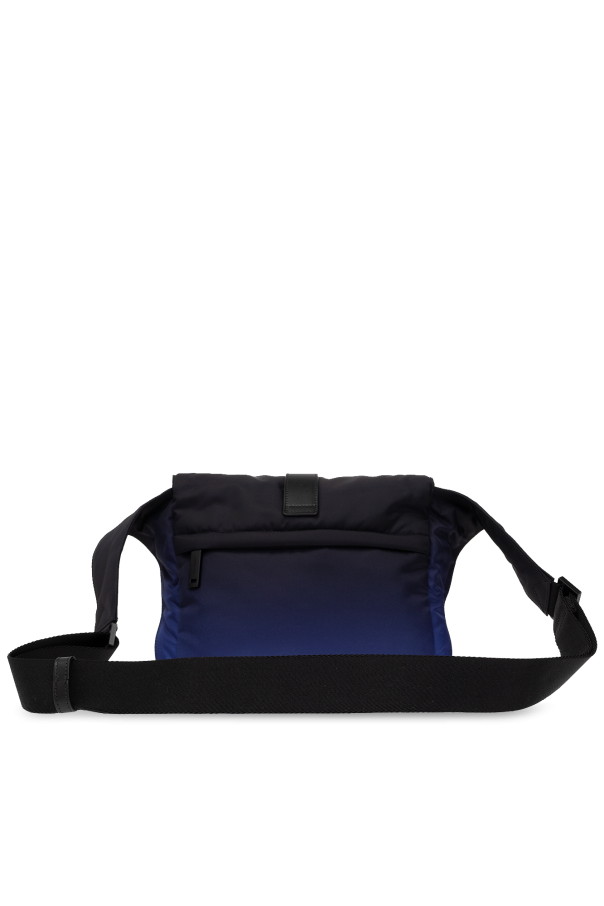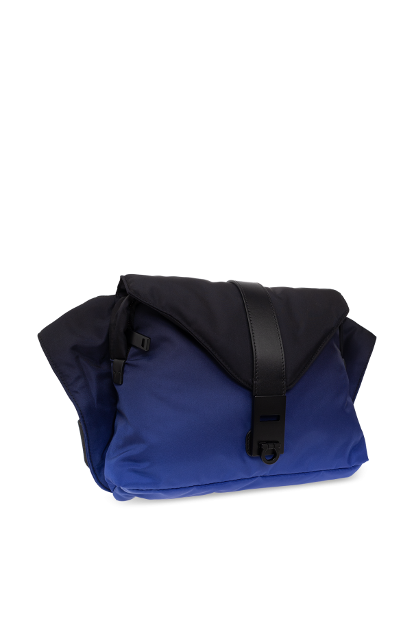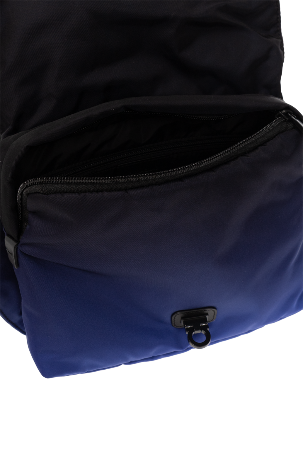 Dark blue and black shoulder bag with a gradient effect from FERRAGAMO. Crafted from technical material and trimmed with leather, this design adjusts via a logo-shaped fastener and features an adjustable shoulder strap and one zipped internal compartment with a pocket.