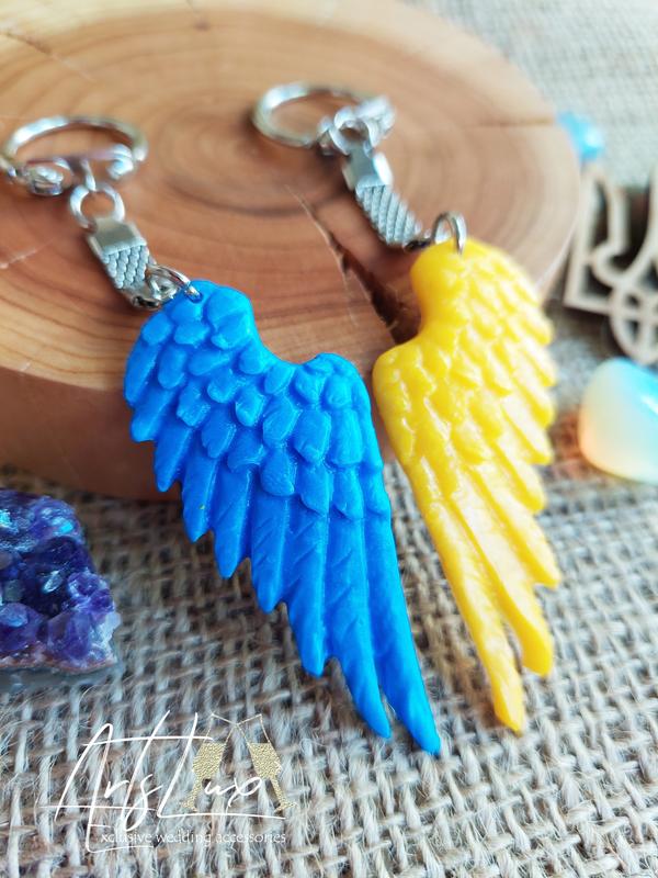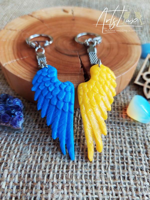 НОВИНКА! Патріотичний парний брелок для ключів для нього і для неї в жовто-блакитних кольорах у формі кріл Ангела. Це частинка нашої української душі. Ручна робота зроблена з любов'ю ❤️ Розмір 6.2*2.5 см