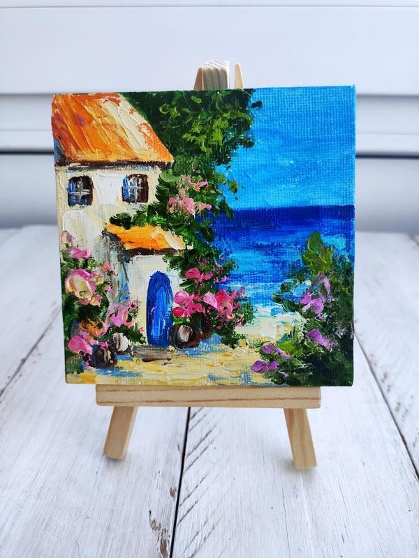 Картина миниатюра, картина масло, холст, техника импасто, авторская работа. Мини картина может быть милым подарком. Отличный декор для спальни, гостиной или кухни. Эта картина идет с мольбертиком..