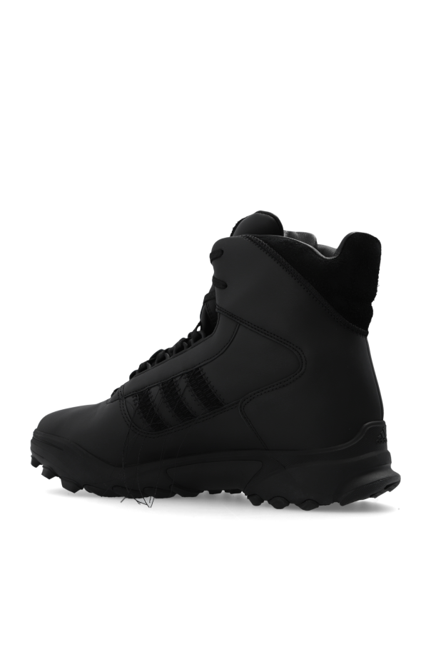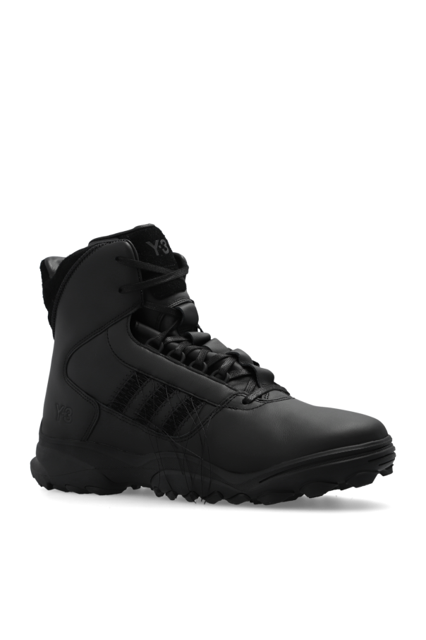 Black ‘GSG9’ high-top sneakers from Y-3 Yohji Yamamoto. Made from leather, this lace-up model sits on a black rubber sole with a print and showcases a light grey logo print on the side, trimmings made using the Japanese Sashiko technique, and Traxion outsole.