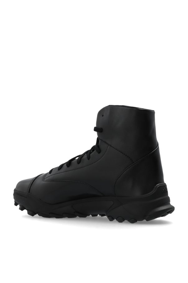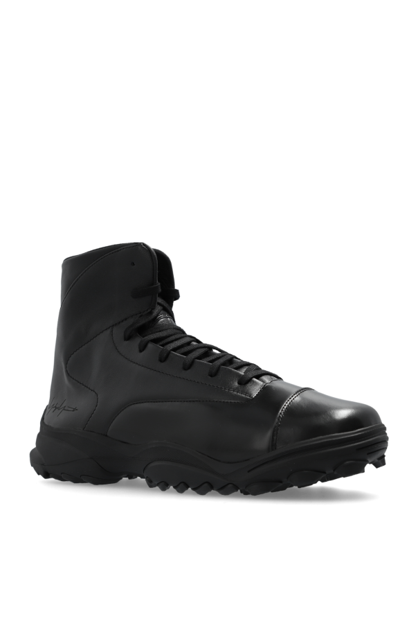 Black ‘GSG9’ high-top sneakers from Y-3 Yohji Yamamoto. Made from leather, this lace-up model sits on a black rubber sole and showcases the brand's logo.