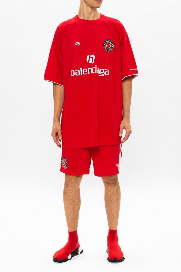 Red ‘Speed 2.0 LT’ sneakers with a sock-like knit upper from Balenciaga. Printed with the brand's logo in white, this pair sits on a black and white rubber sole.