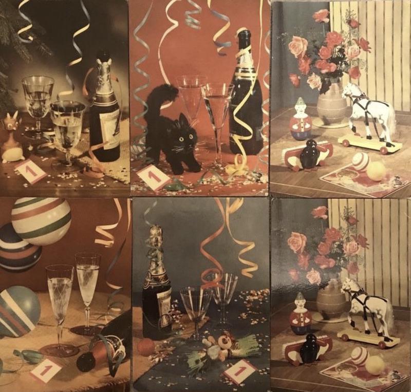 Открыткам больше 60 лет. На некоторых есть потёртости.