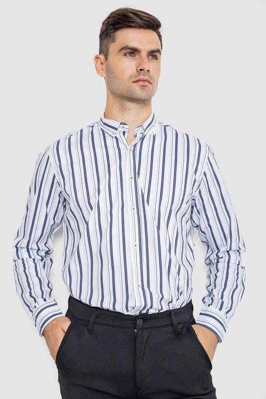 Рубашка мужская котоновая повседневная, цвет бело-синий, 247R411,