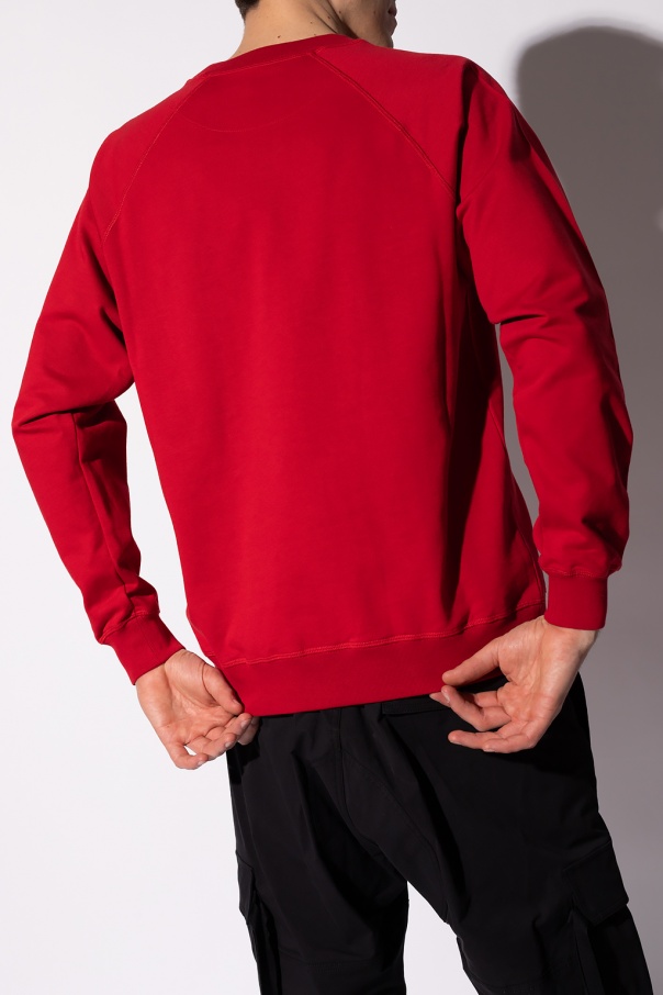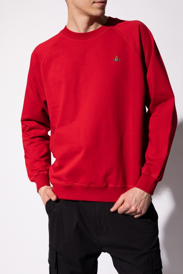 Red crewneck sweatshirt from Vivienne Westwood. Made of cotton, this garment is enriched by a multicolored logo and ribbed trims at the hem and cuffs.