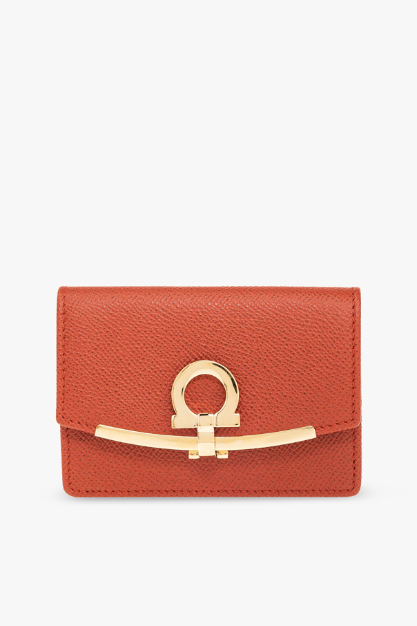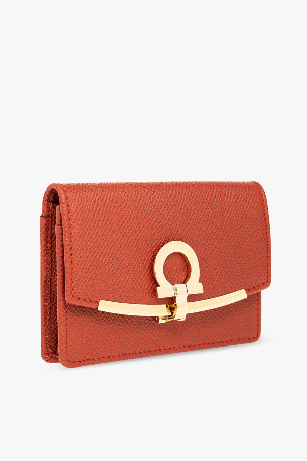 Brown wallet from FERRAGAMO. Made of calf leather, this item features a snap closure with the brand’s signature Gancini motif, card slot at the back and gold-tone metal hardware. It has a pocket, card slot and detachable key chain inside.