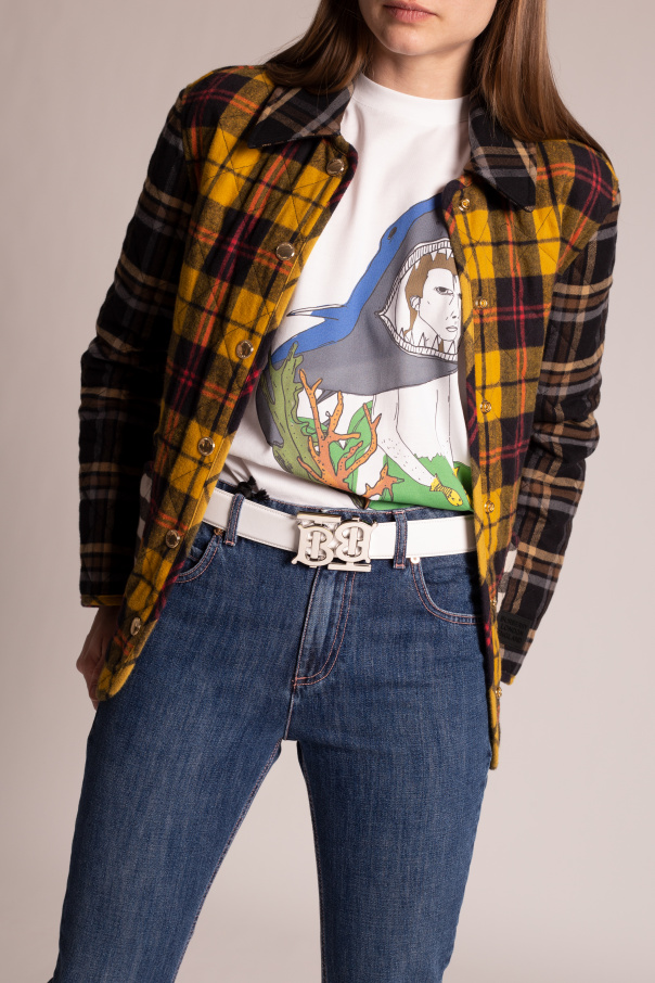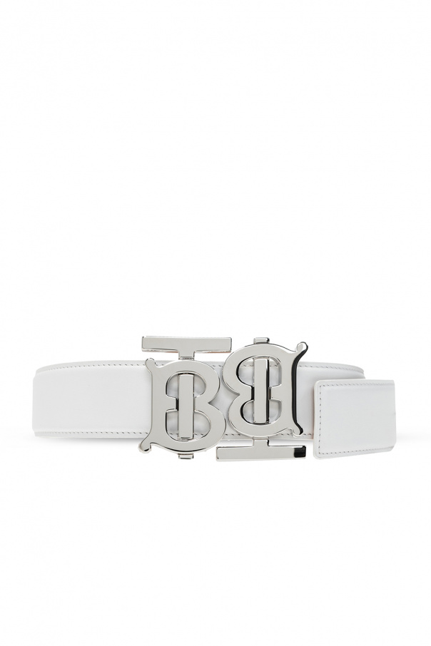 White belt from Burberry. Made of leather, this item comes with a silver-tone monogram buckle.
