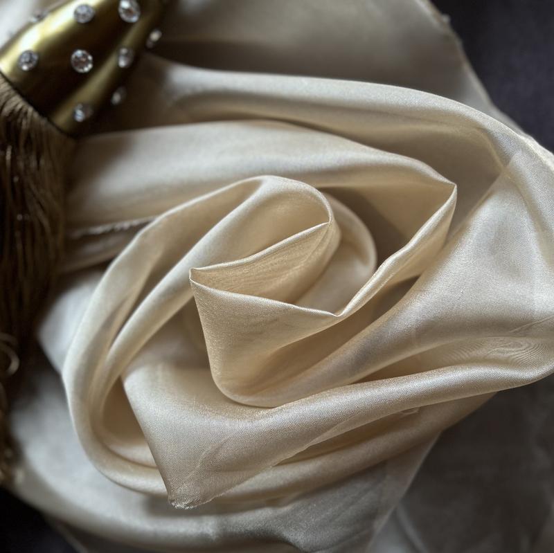 2. Мягкость и легкость: Эта ткань отличается приятной текстурой и комфортна на ощупь, что делает ее идеальной для пошива одежды, особенно вечерних и свадебных платьев, блузок и юбок.