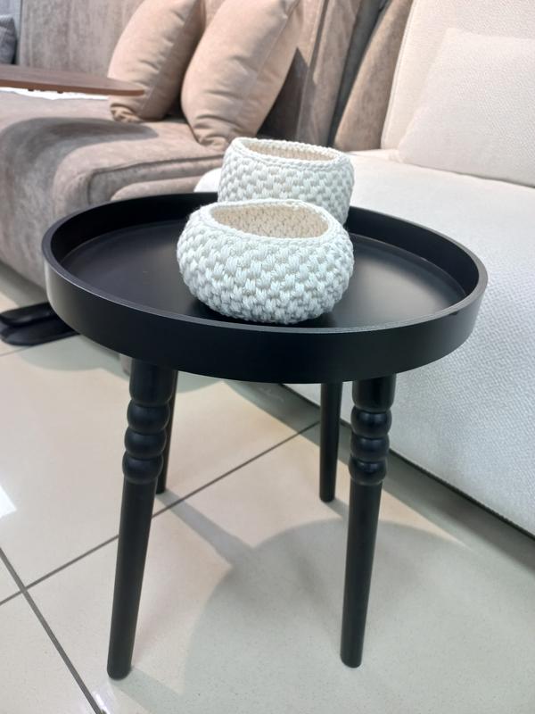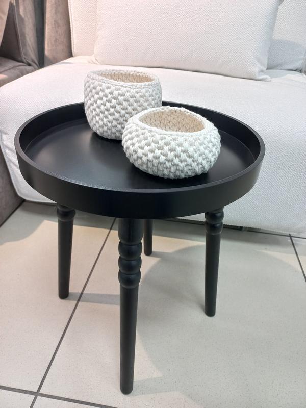 Стильний журнальний столик з натурального дерева. 40х45см. Ніжки натуральна деревина, стільниця МДФ , колір чорний